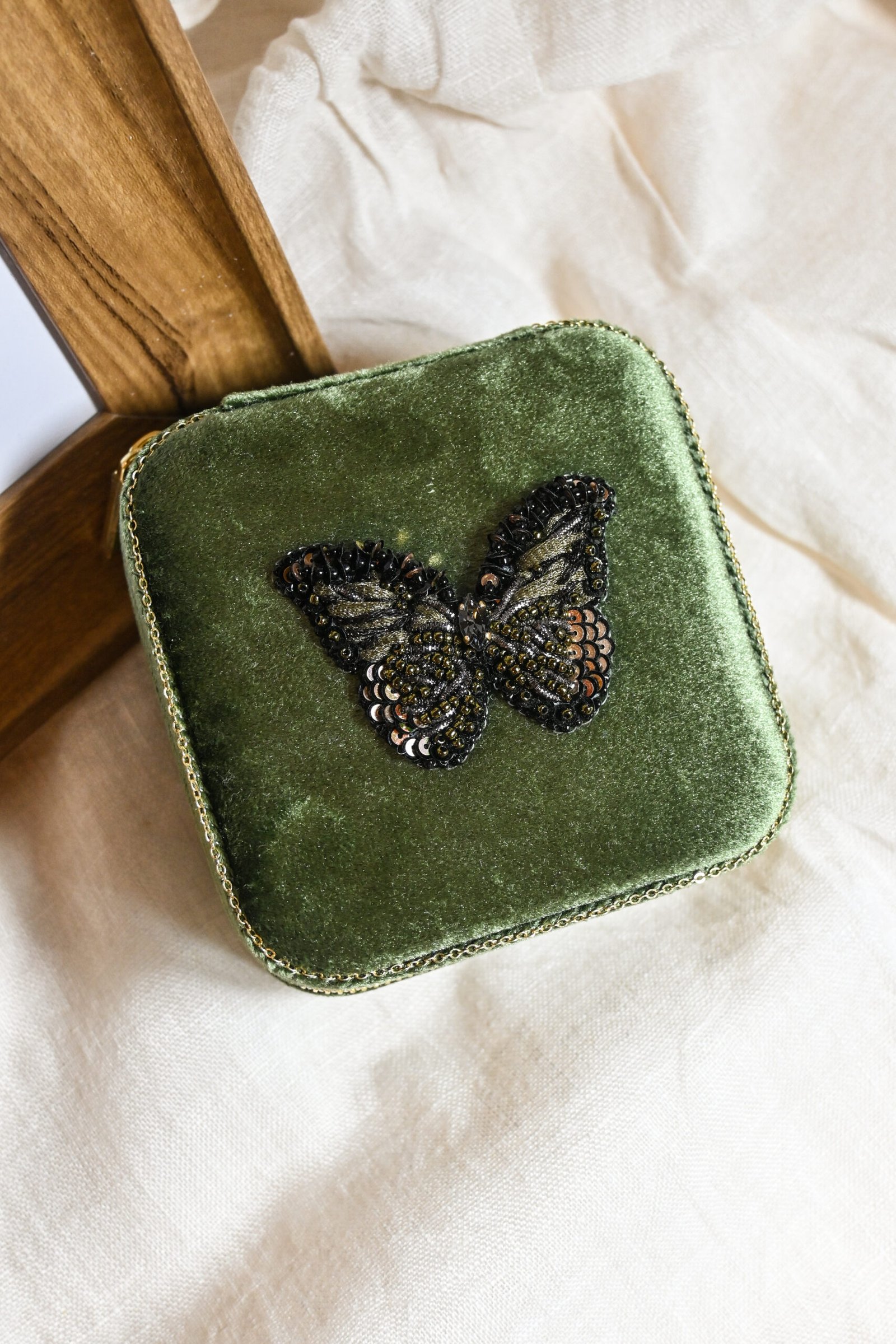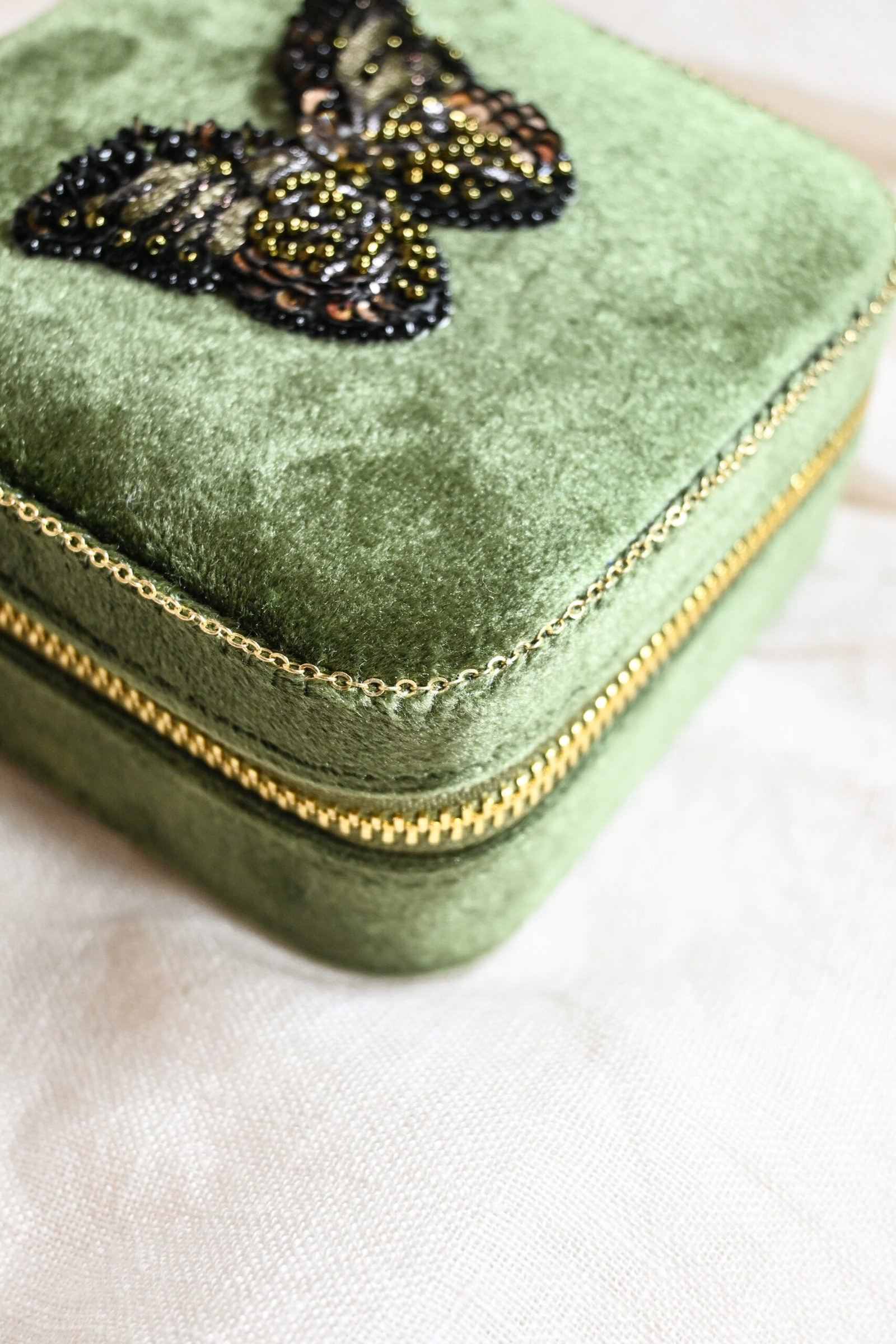 PREMIUM kokybės papuošalų dėžutė ir rankomis siuvinėtas drugelis – mėgstančioms išskirtines detales ir ilgaamžius daiktus.